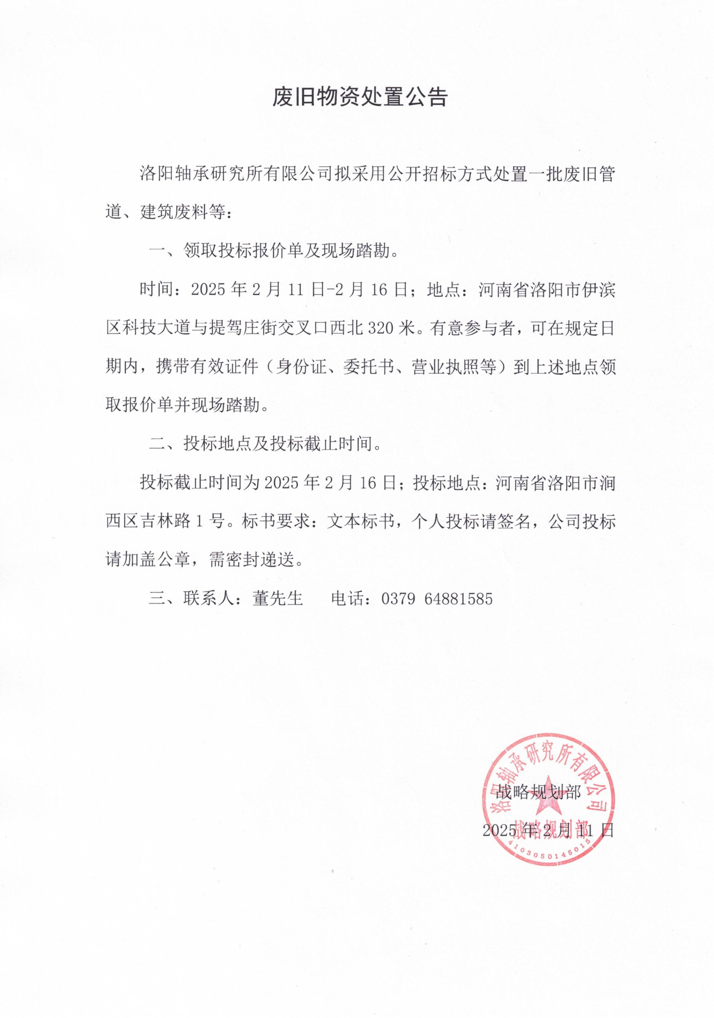 文章出處:招標采購信息 網責任編輯: 洛陽軸承 閱讀量: 發(fā)表時間:2025-02-11 17:36:56
